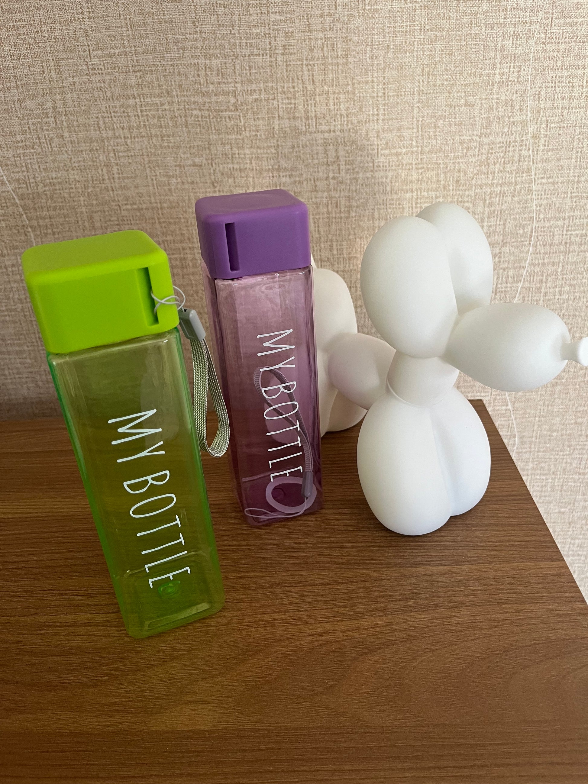 Botella plástica de 500 ml, con diseño cuadrado moderno y cómodo para llevar en la cartera, mochila o bolso.