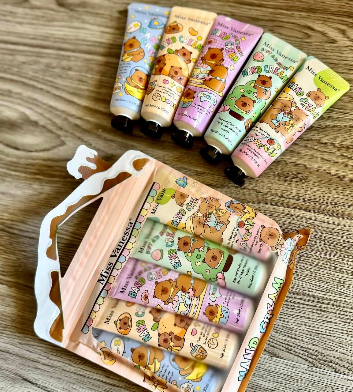 •Pack de 5 cremas para manos perfumadas.