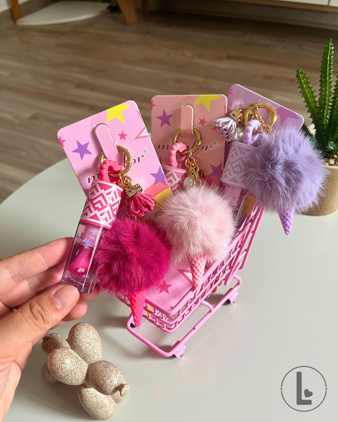 Gloss labial en formato llavero con un delicado diseño de heladito, ideal para sumar un toque divertido y femenino a tu día a día. Su presentación lo convierte en un accesorio práctico y encantador, perfecto para llevar siempre con vos.