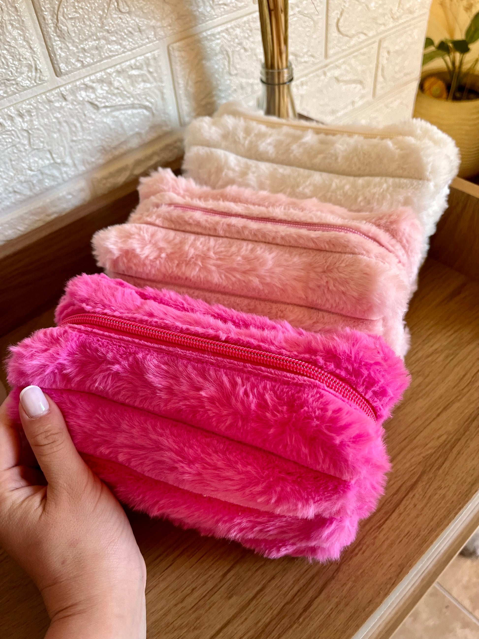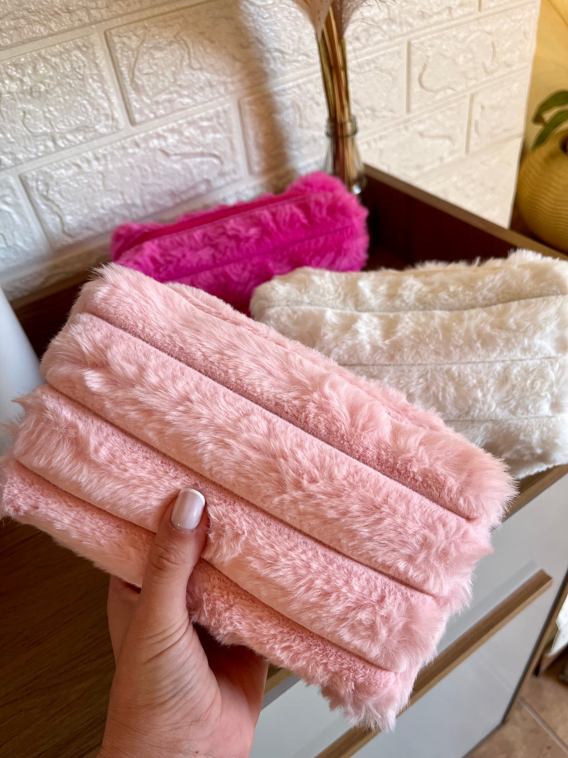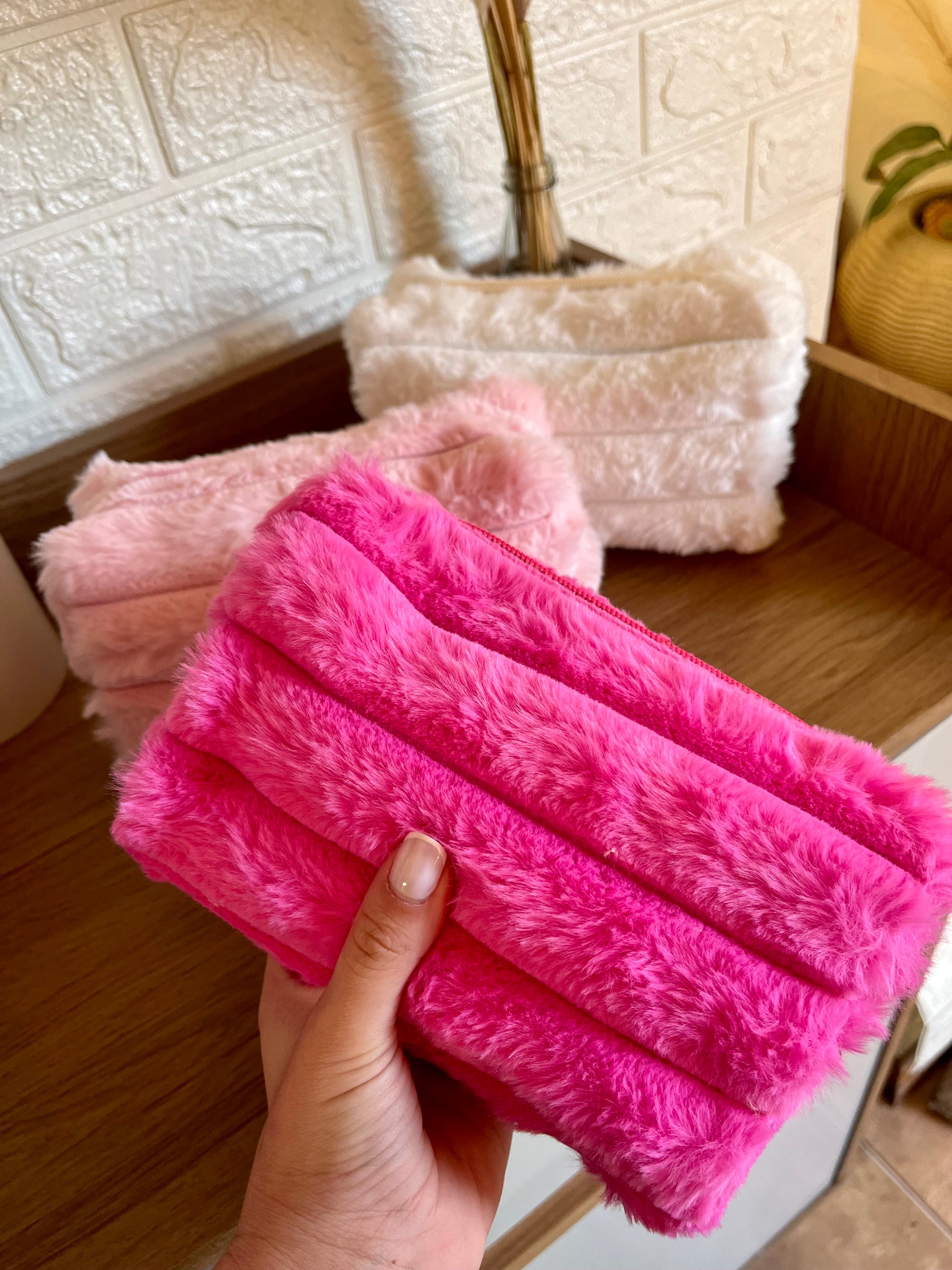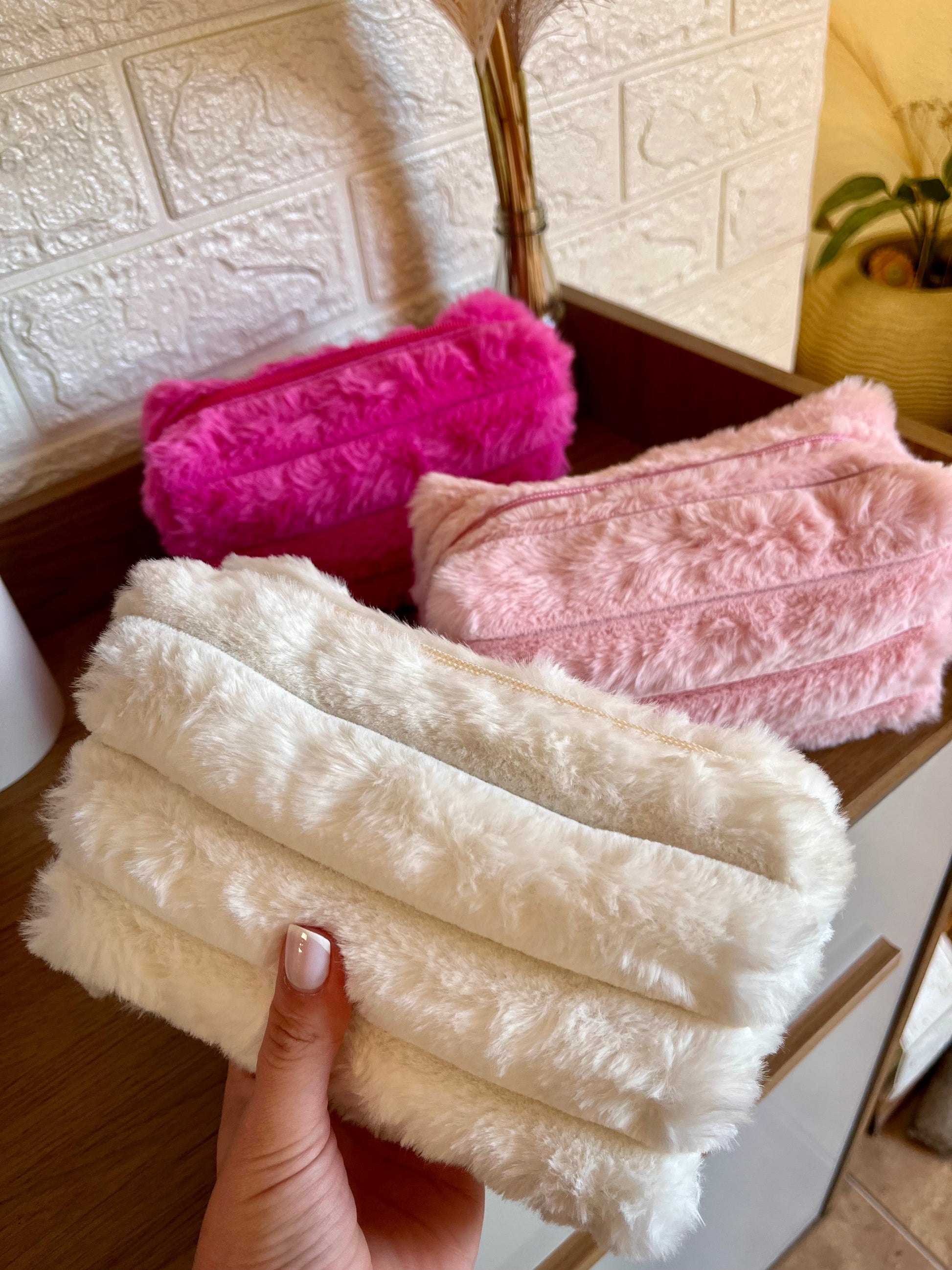 •Hermosos y suaves neceser en tela peluche.