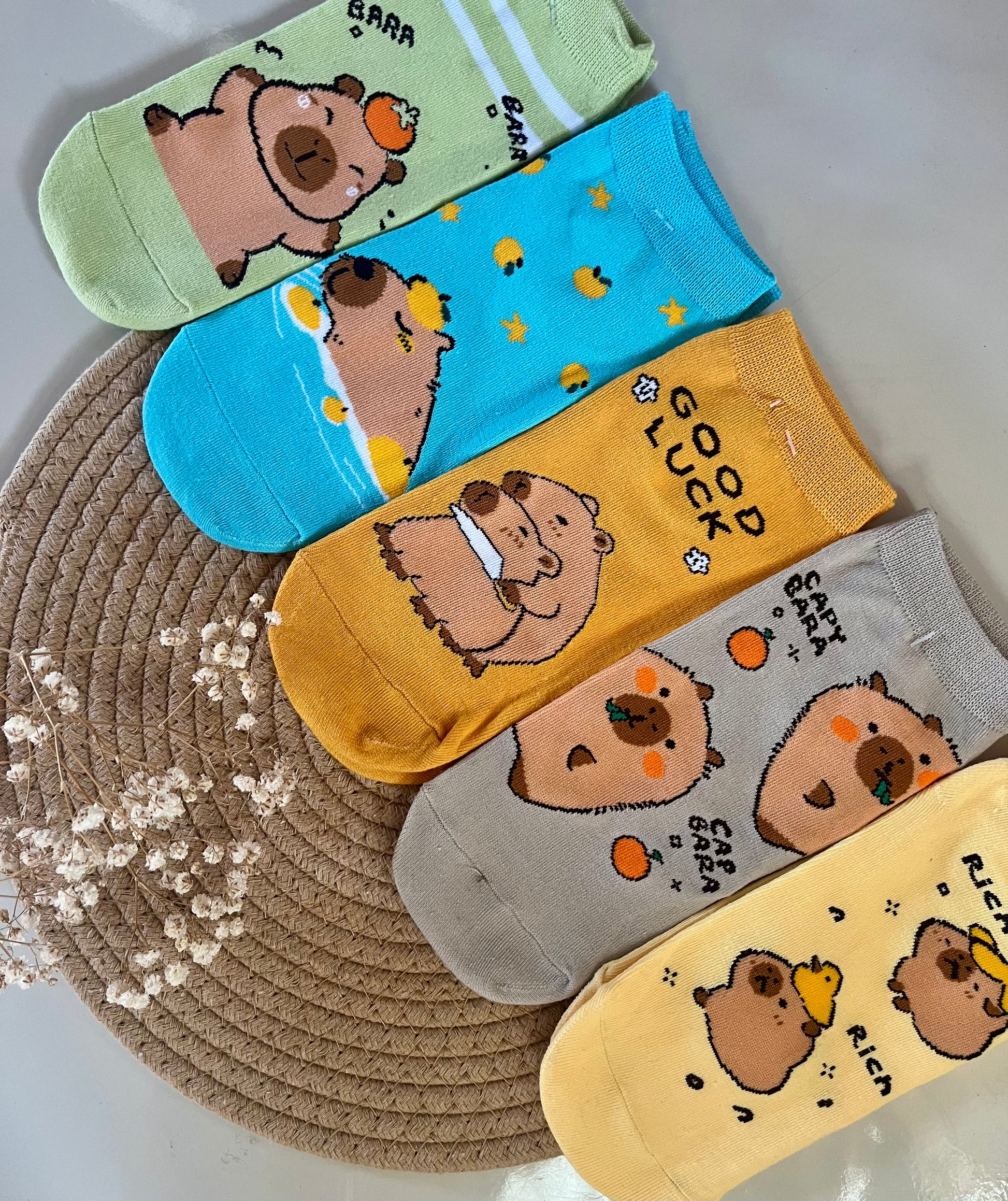 •Pack de 3 pares de soquetes con diseño Capibara.