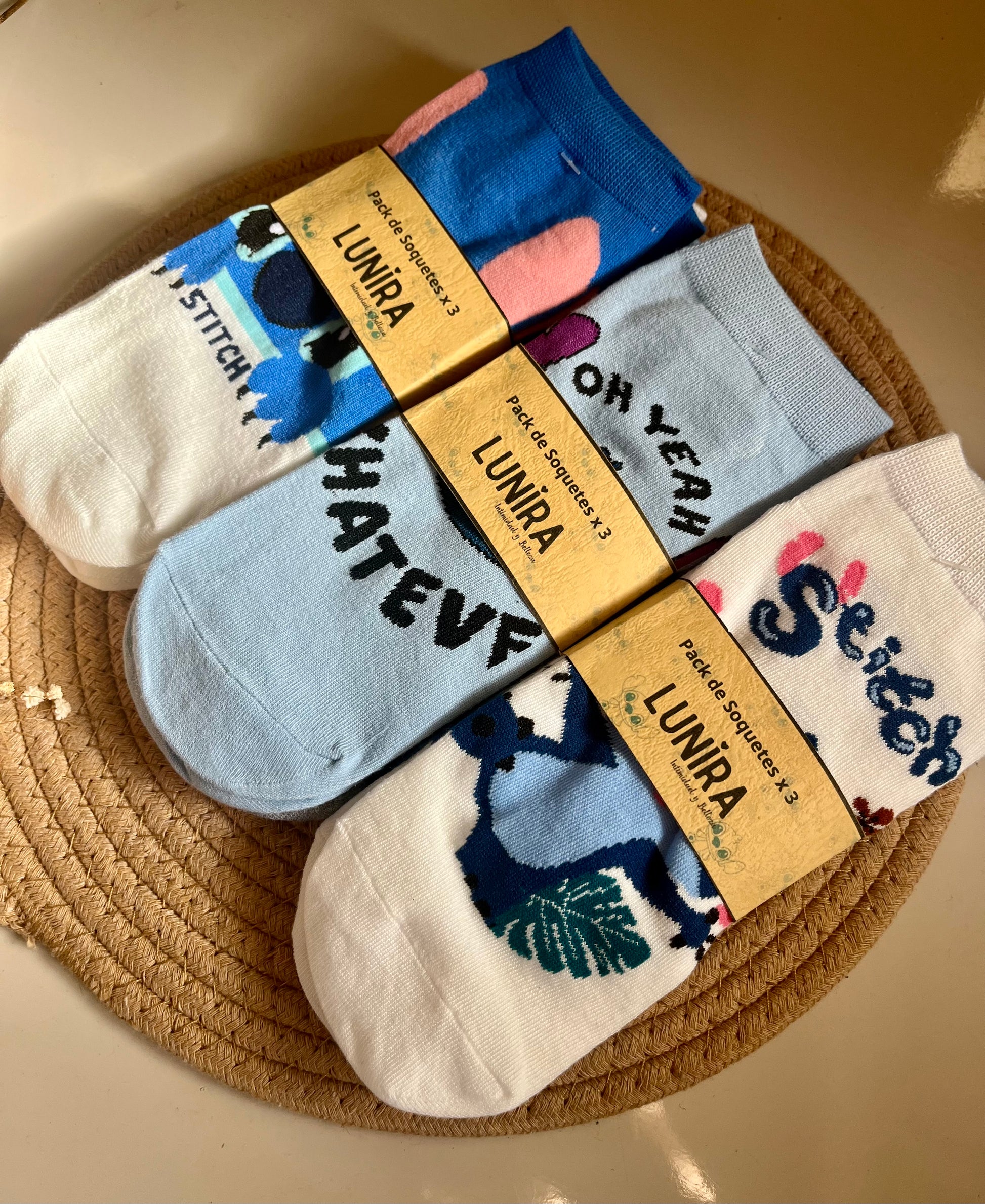 •Pack de 3 pares de soquetes con diseños de Stitch.